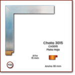 Código: CH3015 Descripción: Chata 3015 Medida: Frente: 30 mm. Alto: 15 mm. Acabado: Plata Hoja