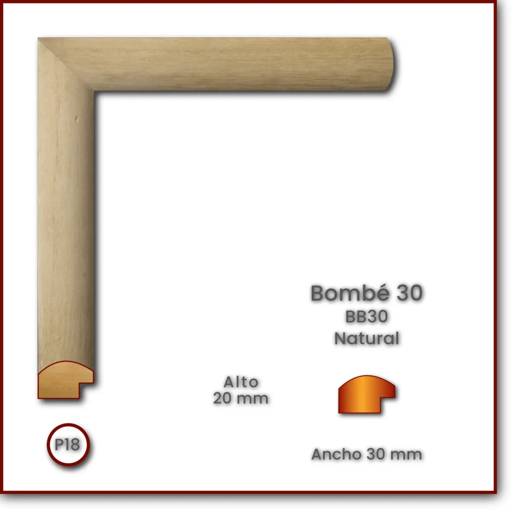 Código: BB15 Descripción: Bombé 15 Medida: Frente: 15 mm Alto: 12 mm Acabado: Moldura Natural