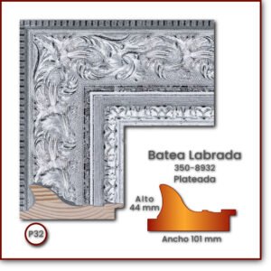Código: 350-8932 Descripción: Batea Labrada 100 Medida: Frente: 101 mm Alto: 44 mm Acabado: Plateado