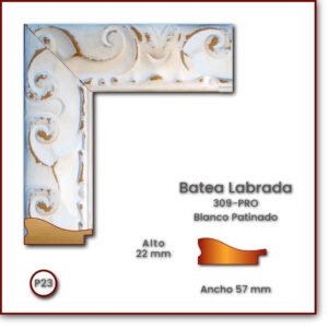 Código: 309-Pro Descripción: Batea Labrada 57 Medida: Frente: 57 mm Alto: 22 mm Acabado: Blanco Patinado