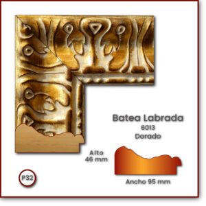 Código: 6013 Descripción: Batea Labrada 95 Medida: Frente: 95 mm Alto: 46 mm Acabado: Dorado
