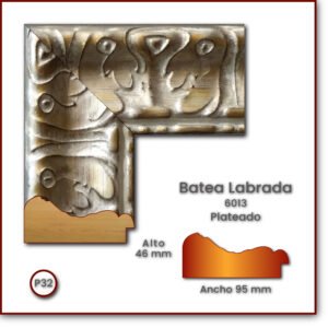 Código: 6013 Descripción: Batea Labrada 95 Medida: Frente: 95 mm Alto: 46 mm Acabado: Plateado