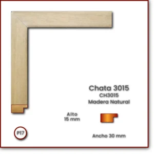 Código: CH3015 Descripción: Chata 3015 Medida: Frente: 30 mm. Alto: 15 mm. Acabado: Madera Natural