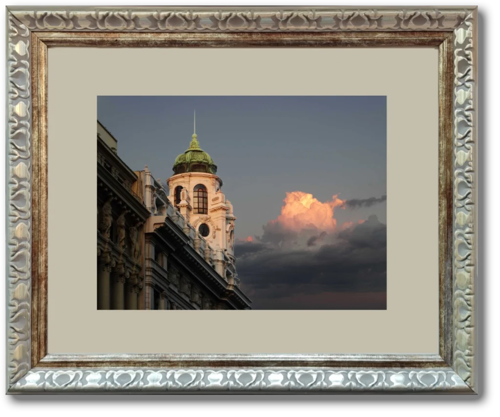 Descripción: Marco labrado de 3 cm plateado con passepartout