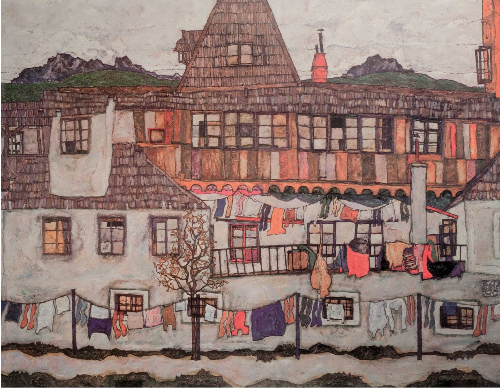 Egon Schiele | Li0378 | Casa de periferia con panniu stesi ad asciugare, 1917